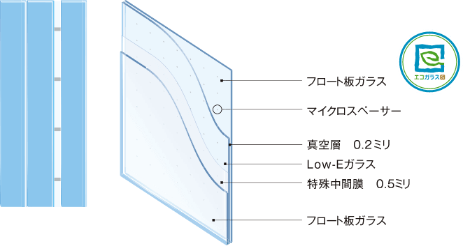 例えば、合わせガラスが持つ「防音性能」と、複層ガラス以上の「断熱性能」をひとつにまとめた*真空ガラス「スペーシア静」*などがその代表です。