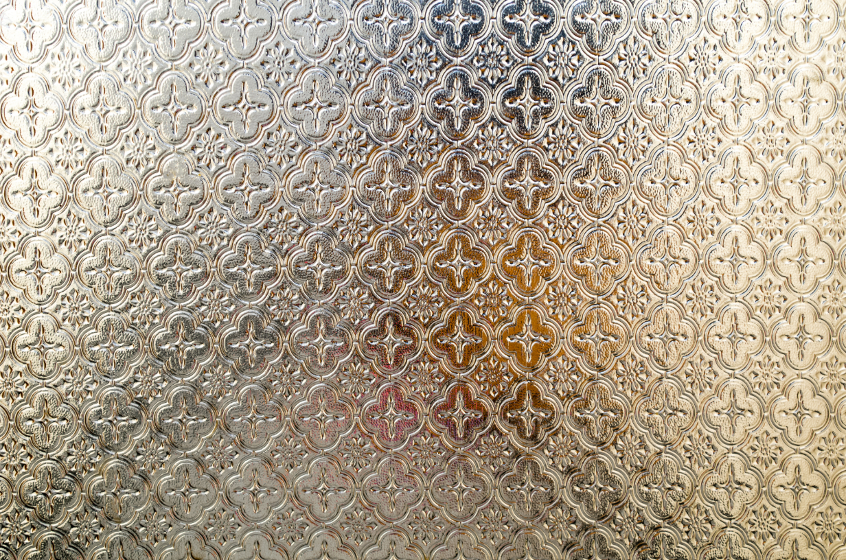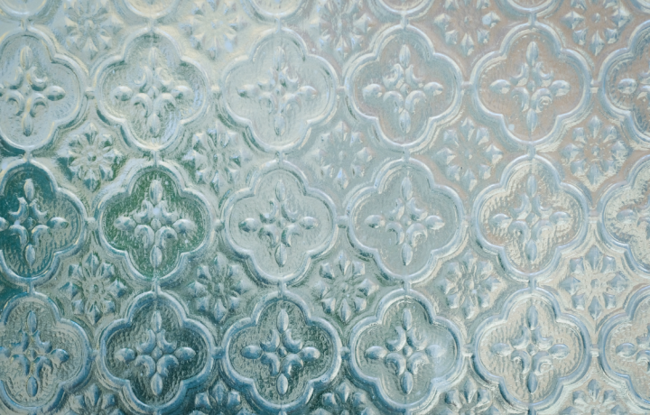 フローラガラスとは、型板ガラスの一種で、ガラス表面に花をモチーフとした凹凸模様が施された製品を指します。製造時に溶融ガラスを模様付きのロールで圧延することで、片面に立体的な模様が形成されるのが特徴です。