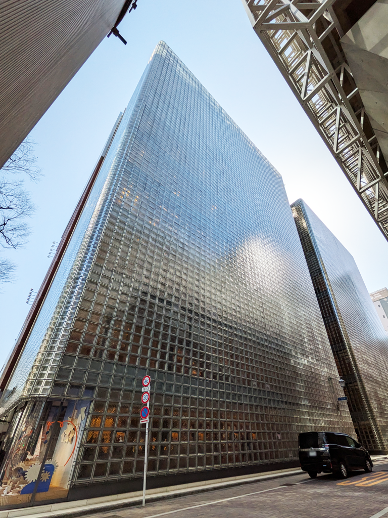 都市の中でガラスという素材が、どのように建築の表情を作り出し、街並みに溶け込むのか。その優れた実例として、今なお色褪せない価値を持っています。
