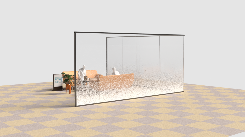 デザイン面では、ガラスフィルムがあることで単なる透明の仕切りでは得られないアクセントを加えることができます。