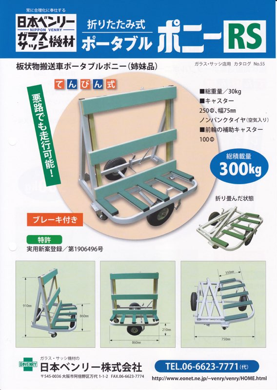 現場内運搬の強力な味方:ポニー(ガラス搬送台車)