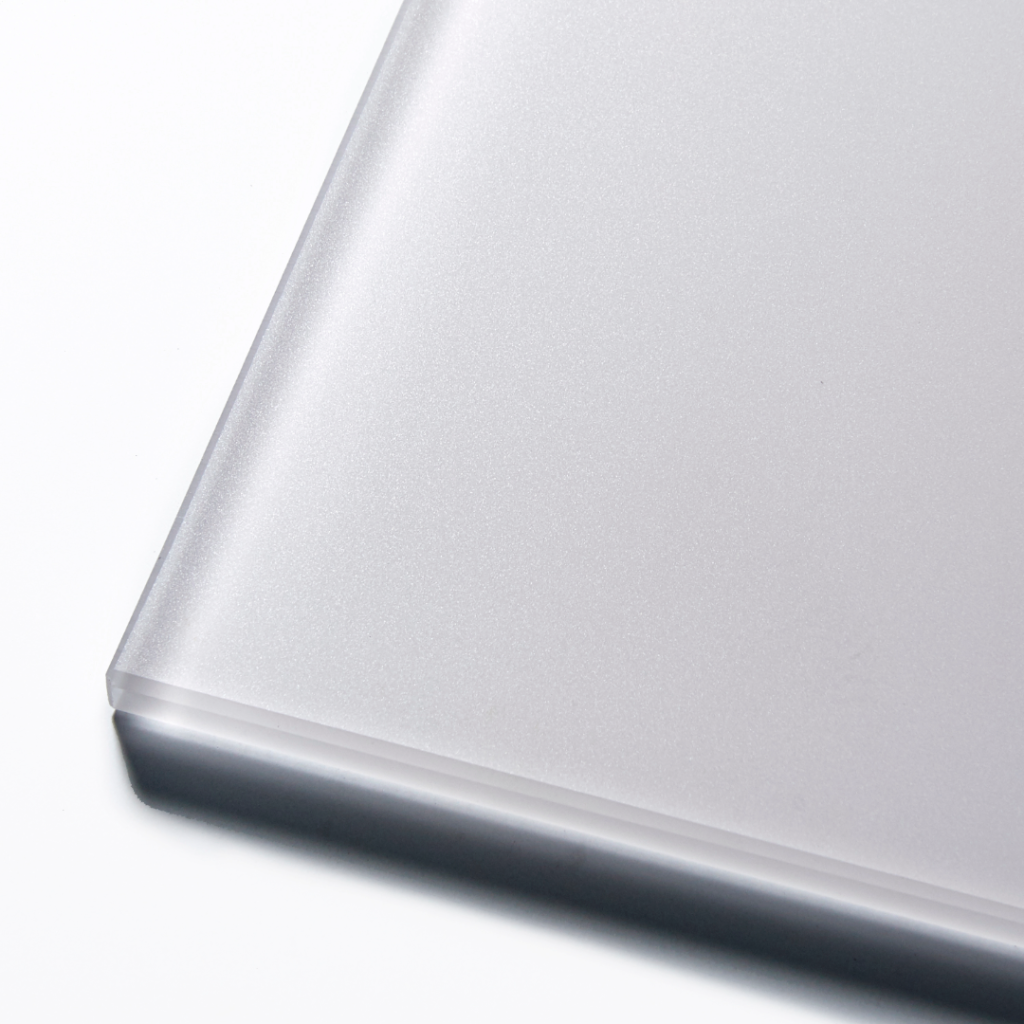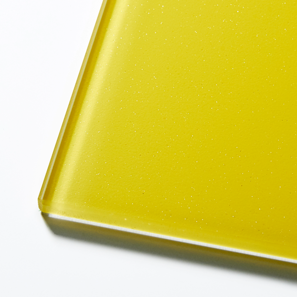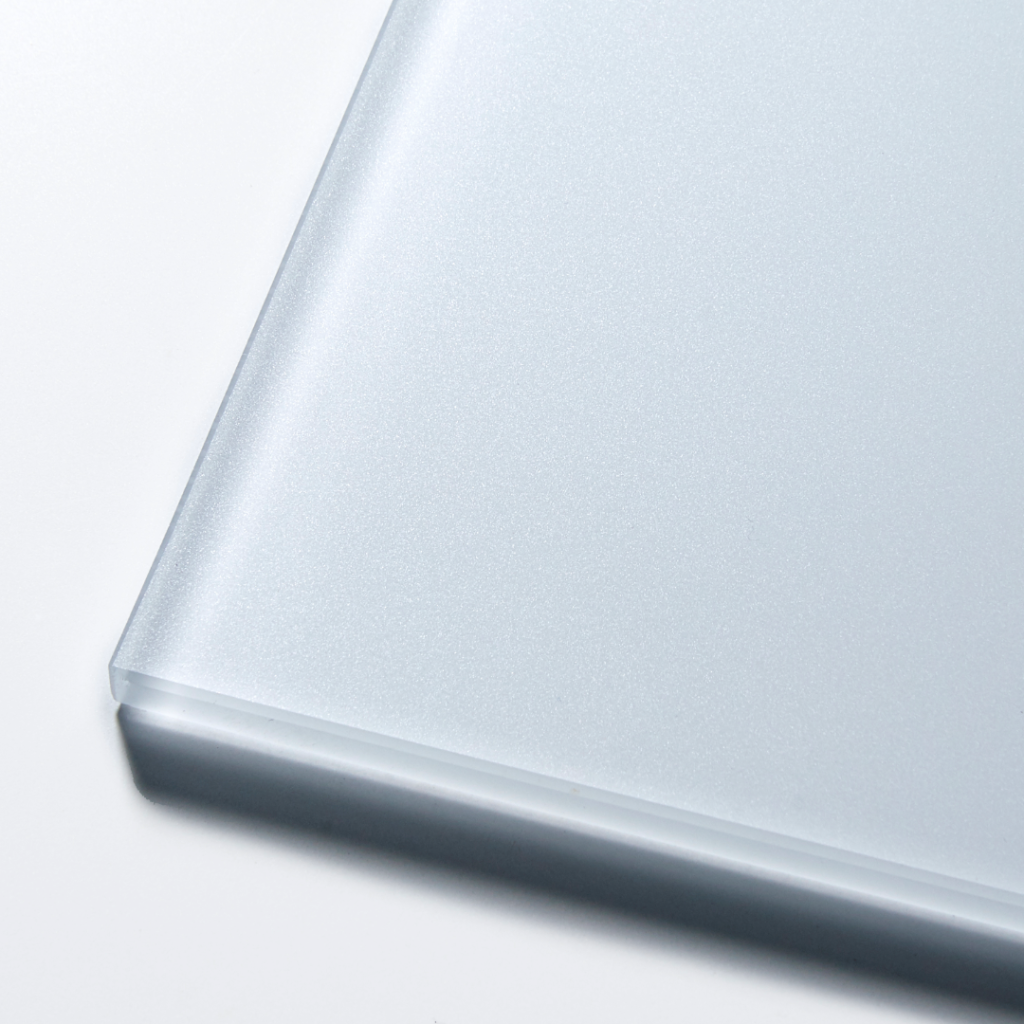 これは高透過ガラスを使用したピュアカラーの表面に、さらにフロスト処理を施した製品で、色彩の鮮やかさを残しながらも、落ち着いた表情を見せてくれます。
