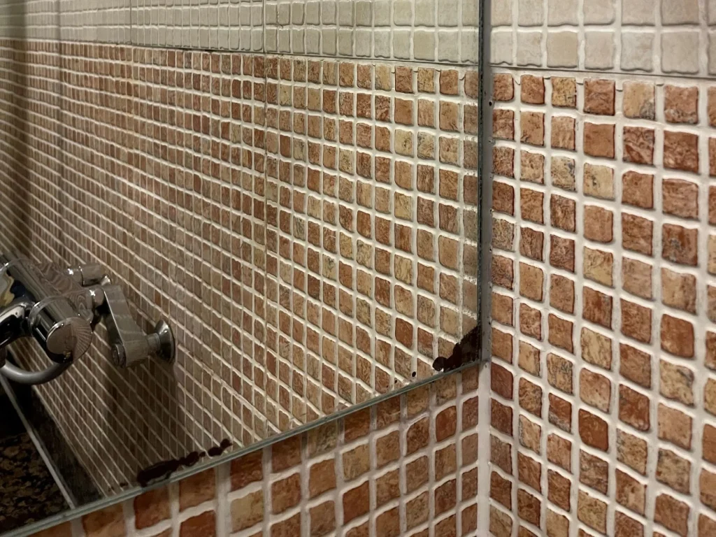 • 強力な洗剤の飛散: 浴室用やトイレ用の強力な洗剤(酸性・アルカリ性)が鏡に付着すると、保護塗装を透過して直接銀を腐食させることがあります。